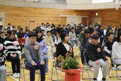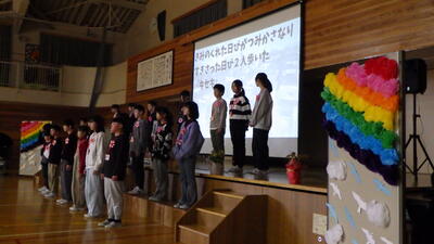 今日は、前期課程の修了式が行われました。この6年間がんばったことへの祝福と6年生への感謝や歓迎の気持ちを込めての会でした。