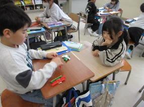 どの学年も、グループやペアで確かめ合ったり、教え合ったりして学習をすることがあります。写真は、1年生の算数と2年生の国語の様子です。