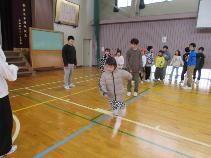 冬の縦割り集会は、「8の字跳び」に取り組んでいます。6年生が縄を回し、1~5年生が跳びます。練習を重ねた後、決められた時間内に何回跳べたかを競いました。どのグループも1回目より2回目の記録が伸びました。8の字跳びが苦手な子も、上級生に励まされたり縄に入るタイミングを教えてもらって上手になってきました。真剣で楽しい時間でした。