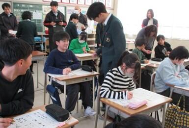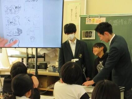 21日(水)、5年生は市立高校芸術コースの6人の生徒さんから「表情の描き方」を学びました。1時間の授業のために高校生のみなさんは、教材の準備をしたり模擬授業を重ねたりしてくれたそうです。楽しく学べた1時間でした。27日からは、6人の生徒さんの絵画作品を家庭室で鑑賞できるようにしました。