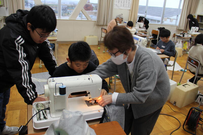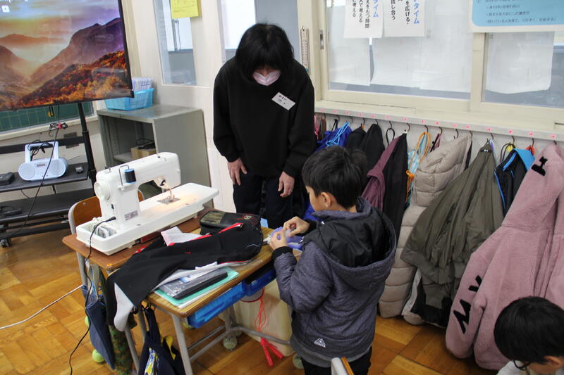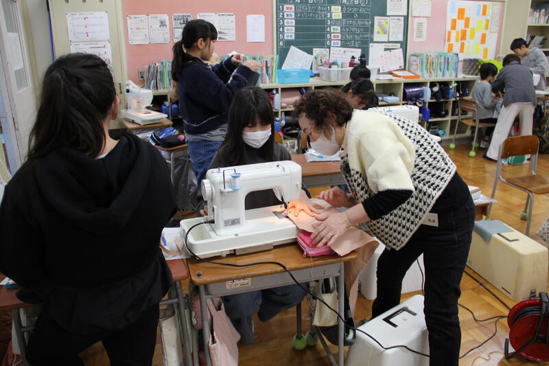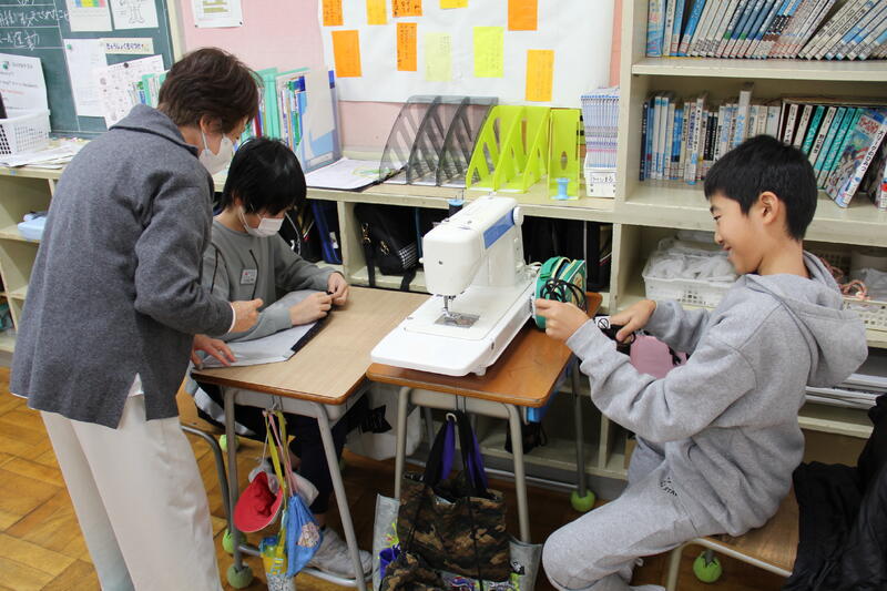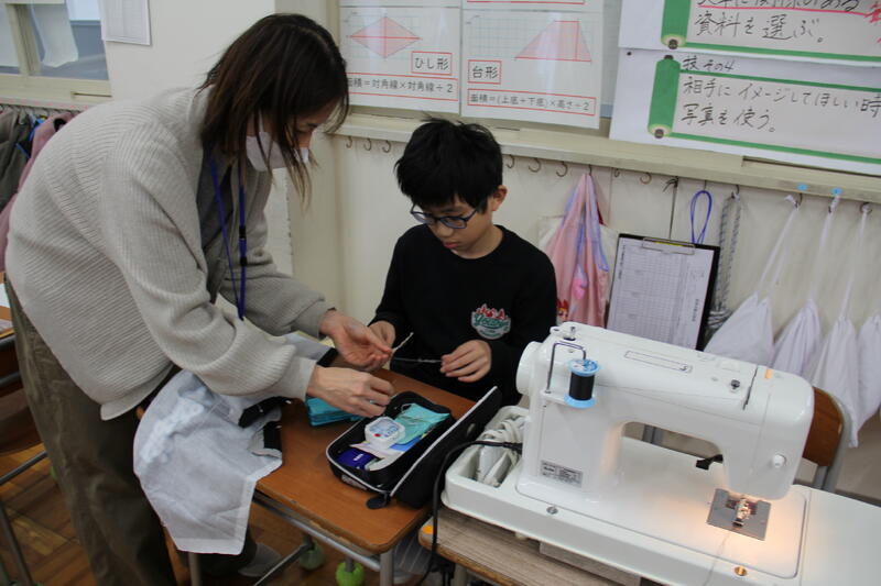 今、5年生の家庭科ではエプロンづくりをしています。それに伴うミシンかけの授業にボランティアの方々にお手伝いに来ていただきました。困った時にすぐ教えてもらえて、児童も不安をもたずに作業することができました。ありがとうございました。