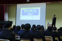 学習オリエンテーションでは今年度、「つなぐ」をテーマに本校は学習を進めていくことを生徒たちと共有しました。ところところでペアで話し合う場面では、周りの仲間と学ぶことについて素直な考えを交流できました。