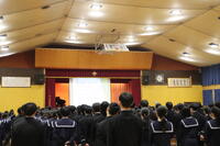 さて、先日、3学期の始業式が行われました。3年生は「自らの進路の実現」、1、2年生は「来年度に向けての0学期」をキーワードに新たな志を胸に学校全体がスタートしました。どの学年もとても落ち着いた素晴らしい雰囲気の中で、校長先生からは、自分の目標をしっかりと定め、スタートを切ること。そしてなりたい姿になるためにの行動を「やり続けること」、それらの「レベルを上げていくこと」についてお話していただきました。また、西田先生からは「新たな自分のスタート」、坂野先生からは「登下校の確認」についてお話をしていただきました。今年最初の全校生徒による校歌も素晴らしく、真剣な面持ちで式を終えました。