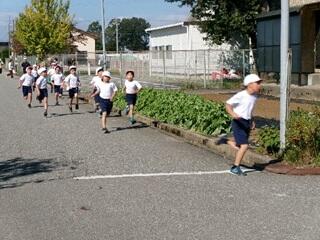 晴天の下、持久走記録会をしました。どの学年も最後まであきらめずに走り切る姿がとても素敵でした。