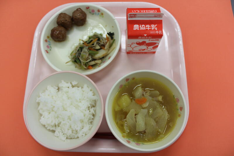 ごはん 牛乳 肉団子の甘酢あん もやしのごま炒め 冬瓜のカレースープ煮