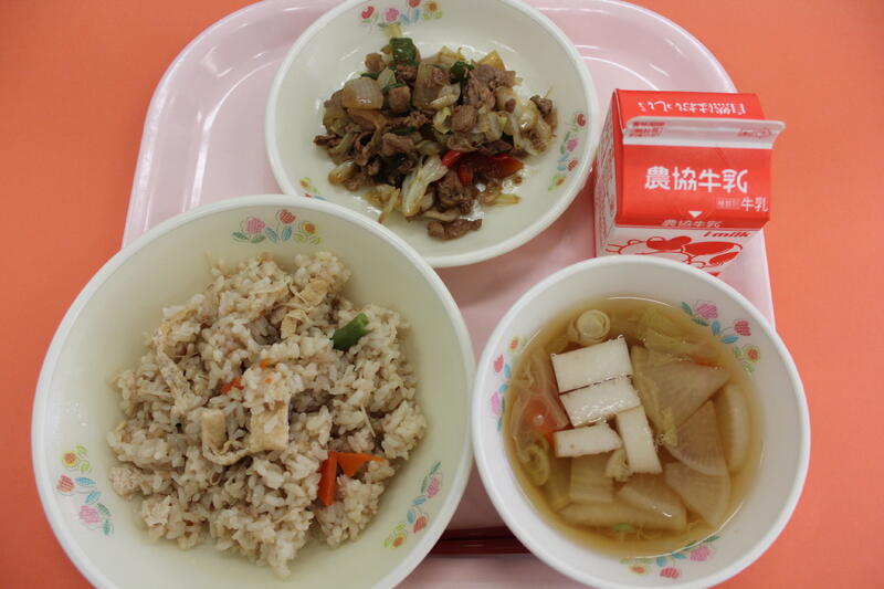 一覧へ 秋の香りごはん 牛乳 豚肉とキャベツの炒めもの ふかしと野菜のすまし汁 日時 2025年10月24日(金) 公開対象 小松市立安宅小学校 詳細 今日の給食です。 作成者 安宅小学校校長 作成日時 2025-11-28 09:32:20