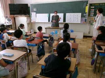 【4年生は保護者の方にも学習に参加してもらいました。】
