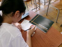 日本財団パラスポーツサポートセンターが主催するワークショップ型授業で、バンクーバー2010冬季パラリンピック・アイアスホッケーでは銀メダルを獲得した馬島誠さんが講師となって授業をしてくださいました。障がいのことを知ったうえで、どうすれば講師と一緒に「おにごっこ」が楽しめるか、グループになって工夫やルールを考えました。そして、実際にやってみて感想やもっと工夫できることなどを発表し合いました。障がいのある人もない人も、思いやり、支え合い、違いを認め合い、難しいことでも工夫してチャレンジすることの楽しさを感じられたひと時でした。最後は一人一人が自分の「あすチャレ!宣言」を考えました。