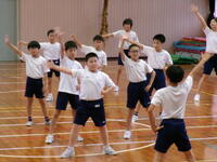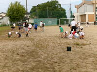 小松特別支援学校のお友達と体育で交流しました。自己紹介の後、みんなで、たからはこびおに、的あてボールけり、シャトルボールけりをやりました。たからはこびおには、鬼の関所を突破して、宝を円の中に運びます。1年生がつけた別名は「おにのすみか」です。鬼にタッチされないように上手にすり抜けなければいけません。大盛りあがりでした。