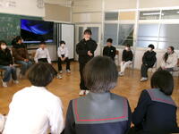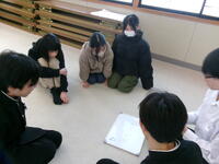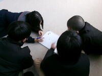 板津校区3小学校の6年生が板津中に集まりました。4月の入学に向けて中1生と交流を深めたり、学校の様子を聴いたりしました。交流では椅子取りゲームや曲当てクイズ等をして楽しそうな笑顔が見られました。中学校生活にちょっぴり不安を感じていた人もいたかもしれませんが、優しく楽しい先輩たちで少し安心できたことと思います。