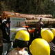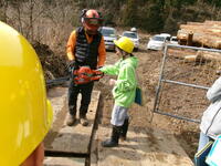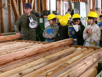 社会科で学習する森林の役割や林業の現状などを知るため、県の事業「いしかわ森林環境実感ツアー」に参加しました。実際に山へ行き、伐採現場を見学したり、切られた木が木材に製材される製材工場を見学したり、木材で家を建てたりしました。なかなかできない貴重な体験でした。