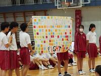 1学期最後の表彰披露や北信越・全国大会への意気込みを語り、みんなでエールを送りました。生徒集会では『やりぬきたいこと』振り返りインタビューが行われ、最後には先生も登場して、ありのままの語りをしてくれました。後半は、生徒会より運動会のスローガンが発表され、続いてドキドキの団抽選が行われました。リモートでしたが、みんなで初めての声出しに挑戦できました!1学期、本当にいろいろなことによく頑張ったみんなに拍手です!