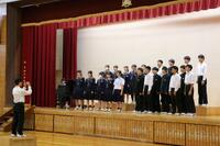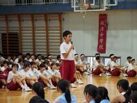 暑い中でしたが体育館に全員が集まり、仲間の栄誉を讃えることができました。学校の部活動や地域クラブと活躍する場所はそれぞれに違いますが、目指すステージに向けて努力を続けてきたことはみな同じです。引退が決まった生徒たちにも、これまで「頑張ってきたこと・続けてきたこと」に誇りをもってほしいと伝えました。次のステージに進むことができた人たちの決意表明が実現することを願って、みんなで拍手で激励しました!