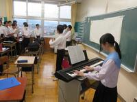 『歌に感謝の気持ちを込めて3年生を送ろう!』という目標を掲げ、1年生がリーダーを中心に自分たちで歌の練習を行っています。卒業式前日に行われる『別れの集い』で在校生から卒業生に歌が贈られます。これまで憧れてきた先輩たちへのたくさんの思い出と感謝を胸に、新たな旅立ちを応援したいと考える後輩たち…素敵な時間が共有されることを願っています。