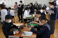 板津校区3小学校の先生方を招いて公開授業が行われました。1年生の音楽、3年生の理科の授業を参観していただき『ICTの効果的な使い方』をテーマに授業を振り返ったり、日頃の活用方法を情報共有したりする機会となりました。小学校の先生方とお話しする機会はとても貴重な時間です。4校が連携し9年間の学びの充実をこれからも目指していきたいです。