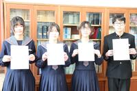 小松市教育委員会では、英語学習に積極的に取り組み、優秀な成績を収めた生徒を称え「English Excellence Award」を授与しています。この賞は、生徒たちのグローバルな視点やコミュニケーション能力の育成を奨励する小松市の取組の一環です。市内中学生の英検2級以上・準2級取得者が表彰されました。本校からは英語賞に鈴木さん・吉田さんの2名、奨励賞に真田さん・竹田さん・松村さん・南さんの4名が受賞しました。Congratulations!