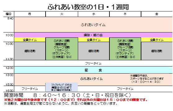 * ふれあい活動(火曜日、木曜日)をしない時は、