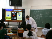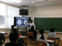 学校薬剤師の下野先生にきていただき、薬物乱用防止教室を行いました。シンナーや覚せい剤等で脳や神経が委縮したり、ぼろぼろになったりしてしまうことを教えていただきました。一回だけでも人生を大きく狂わせてしまうことがわかりました。そのあとは、勧められたときの断り方を役割演技でやってみました。