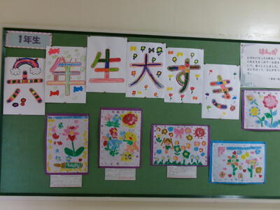20日(金)の6年生を送る会に向けて、各学年の出し物の練習に熱が入ってきました。体育館や教室から練習の声が聞こえてきます。楽しみなような、さみしいような複雑な気持ちです。各学年が6年生への気持ちを精一杯表せるとよいと思います。写真は廊下の1年生の作品です。