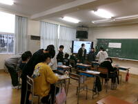 今日は、武士団の方2名が出前授業に来てくださいました。パワーポジションから始まり、ドリブル、パス、シュートの基本を教えていただきました。最後は武士団の方対木場チームで試合をしました。木場チームもなかなかの腕前で、白熱した試合でした。プロのパスやシュートはあざやかでした。技だけでなく、コミュニケーションが大切ということも教えていただきました。