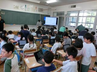 4年生がサイエンスヒルズでプログラミング教室をしました。友達と「どうすればうまくいくかな」と試行錯誤をしながら、あきらめずに何回もチャレンジしていました。