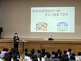 11月の全校集会の中で、後期役員の任命式をしました。名前を呼ばれると立派な返事が返り、やる気を感じました。そのあと委員長が、後期の目標や活動内容を紹介しました。みんなに聞こえる声でしっかり伝えていました。後期の活躍が楽しみです。