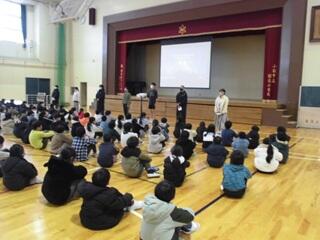 2月の全校集会をしました。2,3月の生活目標についての話の後、綱紀委員会の委員長が、これまでの振り返りと今取り組んでいることを発表しました。学期末までしっかり取り組もうとしていて頼もしく感じました。