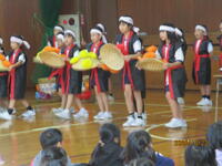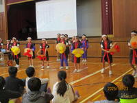 3年生が翌日の24日に児童発表会で発表する伝統芸能を披露してくれました。串町音頭の始まりや串小学校クイズなども一緒に発表して、とても上手でした。