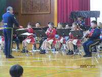 石川県警音楽隊の皆様に来ていただき、体育館で演奏を聴きました。知っている曲もたくさんあってとても楽しかったです。