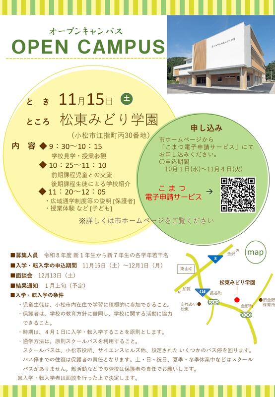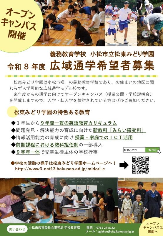 ◇広域通学の申し込みは、小松市教育委員会学校教育課のホームページに掲載されています。