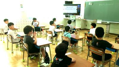 熱中症対策として児童は、教室で校長先生の話や運営委員会による夏休みの過ごし方の話を聞きました。