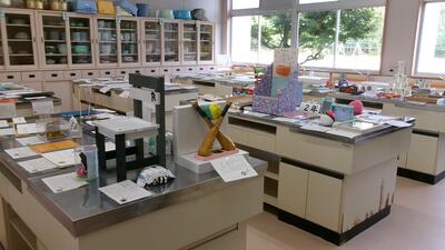 見学するにあたって、自分達の学校の作品だけでなく、他校の友達の作品の良いところを見つけることを目標としました。