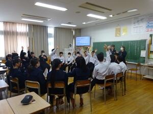 「がんは生活習慣病だと思いますか?」など、気になる問いを投げかけながら授業が進んでいました。今や2人に1人ががんにかかるという時代です。正しい知識を身に着け、周りに患者がいる場合や自分が患者になった場合などに、適切に対処したいですね。