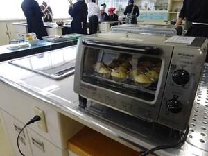 3年生家庭科で、お菓子作りをしています。材料を混ぜオーブンで加熱すると、とっても美味しそうなカップケーキが焼き上がり、生徒たちは笑顔で食べていました。