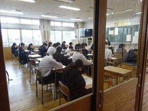 今日から期末テストが始まりました(2年生は学級閉鎖の関係で明日から)。今年度最後の定期テストになります。1年生の教室では、真剣に答案用紙に向き合う生徒の姿がありました。