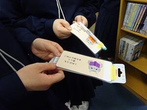 年間50冊以上本を借りて読んだ人を表彰しています。今年度は、100以上が6名、50冊以上が7名でした。昼休みの図書館で表彰し、記念品を渡しました。