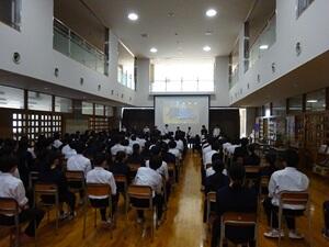 本日、1・2年生で学年集会を実施しました。1年間の活動を振り返ったり、3学期頑張った人たちを称えたりしました。