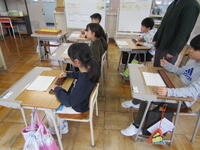 12月15日、3年生のそろばん教室がありました。そろばんの先生の話を聞きながらはじめてのそろばんです。「親指~人差し指~」とつぶやきながら、がんばっていました!