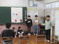 1月27日、年長さんと2年生で英語交流しました。ハローの歌を歌ったり、じゃんけんゲームをしたりしました。「Rock,Scissors,Peper,1,2,3!」