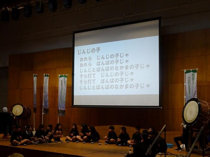 昔から伝わる「じんじの子」の歌を太鼓に合わせて歌う。素朴さがいいね!