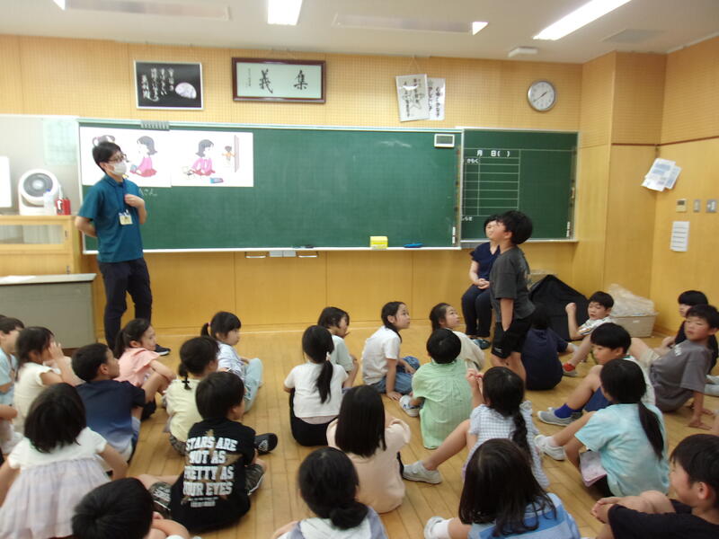 日本の「だし」のこと、だしの素材や取り方など教えていただきました。授業の終わりにはかつおと昆布の合わせだしを飲ませていただき、子供たちも美味しい日本のだしをゆっくりと味わっていました。