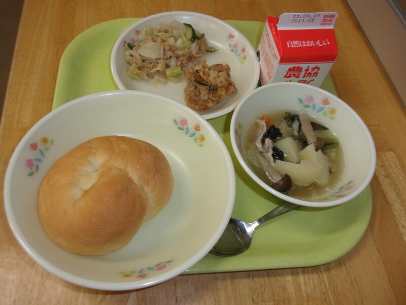 朝晩が肌寒くなり、秋が深まっていくのを感じますね。給食でも秋に旬を迎える食べ物が登場しています。10/23の献立にはおもに金沢市で収穫されるさつまいも(五郎島金時)を使った、米粉のクリームスープでした。  五郎島金時のお話を聞いたあとの1年生に食べた感想を聞いてみると「おいしかった!」「今日の給食全部好き!」と言っていました。また、「(さつまいも)甘いし苦手なんや」と教えてくれた児童もいました。