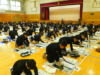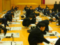 3学期の始業式を体育館で行い、その後は各学年で書き初めをしました。