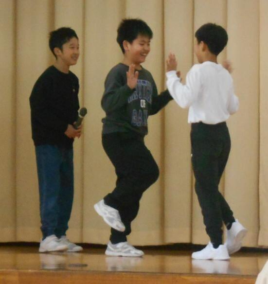 全校集会の後、「片足立ち手押しずもう列車」のチャンピオン大会がありました。1月中に各学年で予選会をし、学年チャンピオンになった子が全校の前で本日のチャンピオン大会にのぞみました。どの対戦も見ごたえのある対決となり、大きな拍手が起きました。これは、今年度重点的に取り組んできた「体幹を鍛える」遊びの一つとして、保健委員会が企画運営してくれました。