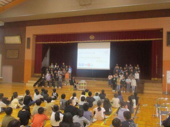 月津小、粟津小の児童が矢田野小に訪れて、日ごろの学習の成果を披露する「児童発表会」が行われました。4年生が「みんなで思いやり、支え合う安心して暮らせる環境づくり」について調べたことを発表しました。
